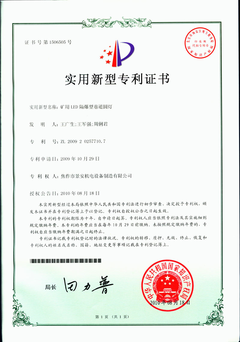 焦作景安公司始終堅(jiān)持“以科技為先導(dǎo),以市場(chǎng)為導(dǎo)向”的發(fā)展戰(zhàn)略,不斷進(jìn)行新產(chǎn)品的研制和開(kāi)發(fā),在國(guó)家“六五”到“九五”期間,承擔(dān)和參與了國(guó)家多項(xiàng)科技攻關(guān)項(xiàng)目。并被中國(guó)電器工業(yè)協(xié)會(huì)評(píng)定為“質(zhì)量可信產(chǎn)品”。特別是在礦用防爆燈領(lǐng)域,礦用隔爆型半導(dǎo)體(LED)照明燈具,2008年列入國(guó)家火炬計(jì)劃,獲2009年河南省工業(yè)和信息化廳的科技成果二等獎(jiǎng),并擁有多項(xiàng)國(guó)家專(zhuān)利。 |